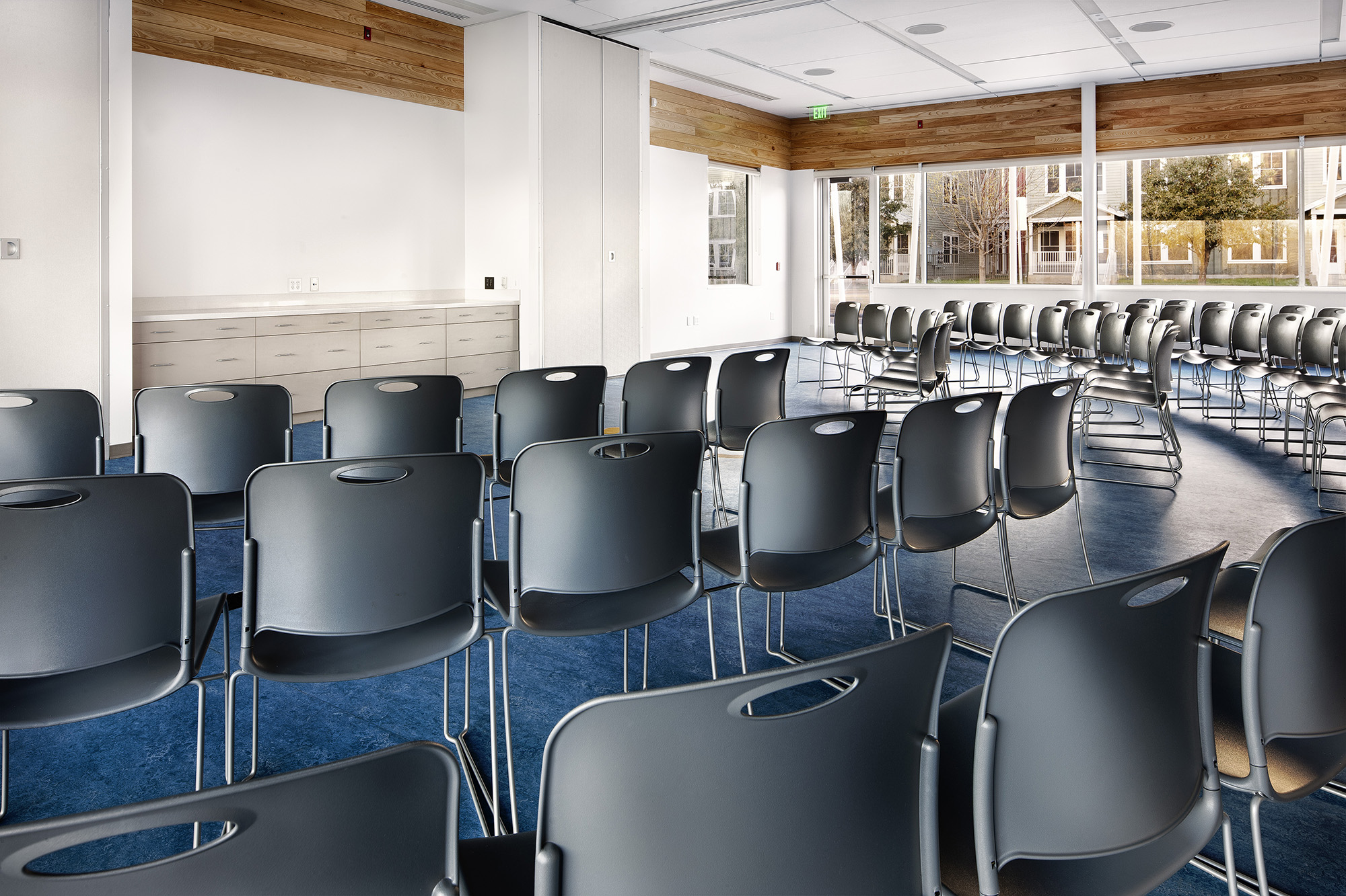 LifeWorks was the fourth commercial project to receive a 5-star rating from the Austin Energy Green Building program. Since the commercial rating program’s inception in 1995, only 2.7% of projects have achieved 5 stars.Despite a tight budget, sustainability was conceived of as a central part of the design. During construction, 82.9% of waste was recycled or salvaged, and 52.5% of the building materials were sourced in-state. When compared to a baseline case study, LifeWorks uses 79.6% less energy, 80% less potable water for irrigation, and 28.3% less indoor potable water. Over 90% of the occupied spaces have exterior views and natural light. The building is sited near several bus routes and a light rail line, while bike racks, showers, lockers and electric car charging stations promote alternative means of transportation.