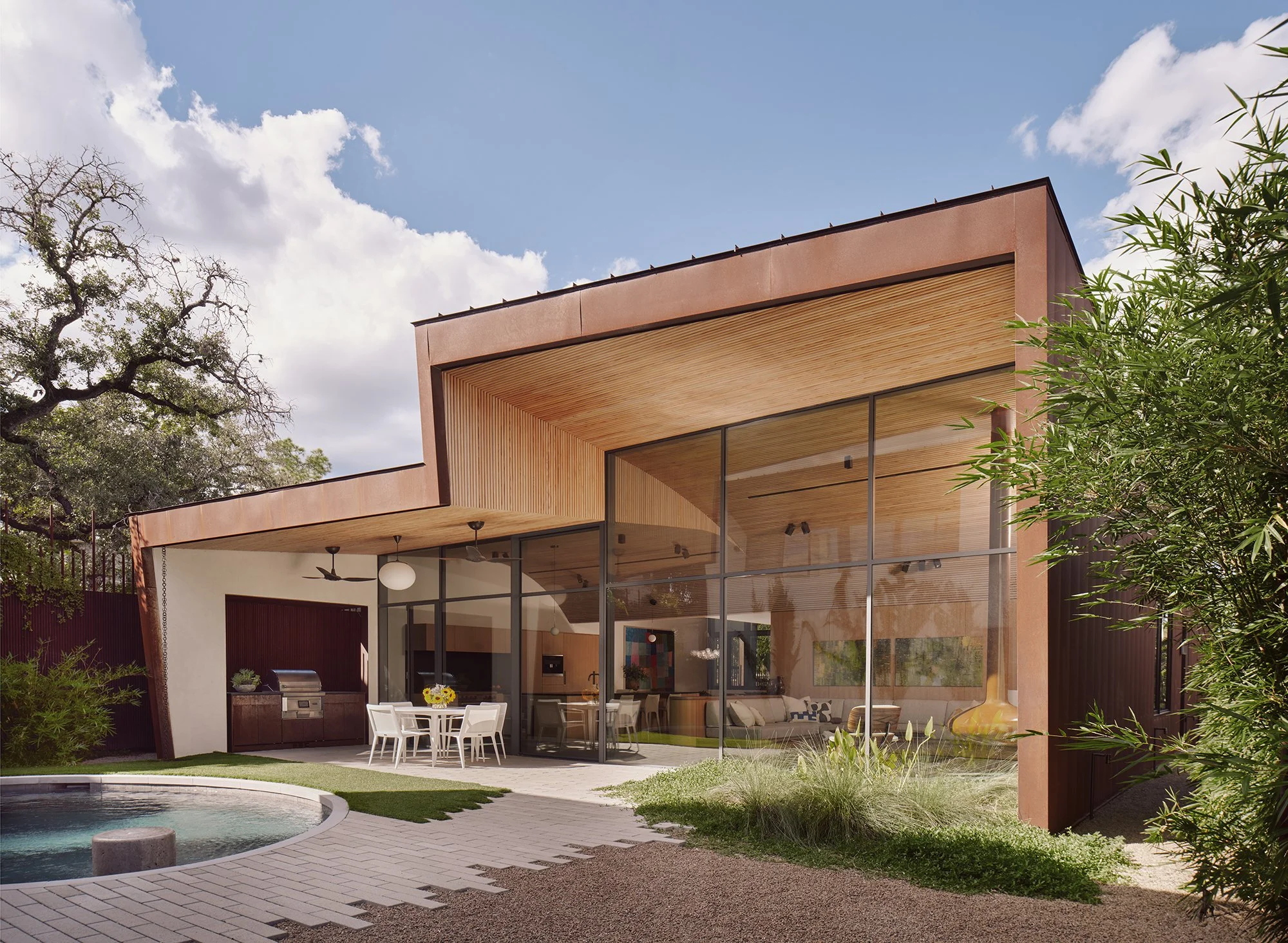 Residence 1401, a Corten-clad home in Old West Austin, is the featured story on the cover of the March/April issue of Luxe Magazine. Entitled “Character Runs Deep In This Modern Austin Escape,” the article explores the relationship between the home and its site:
